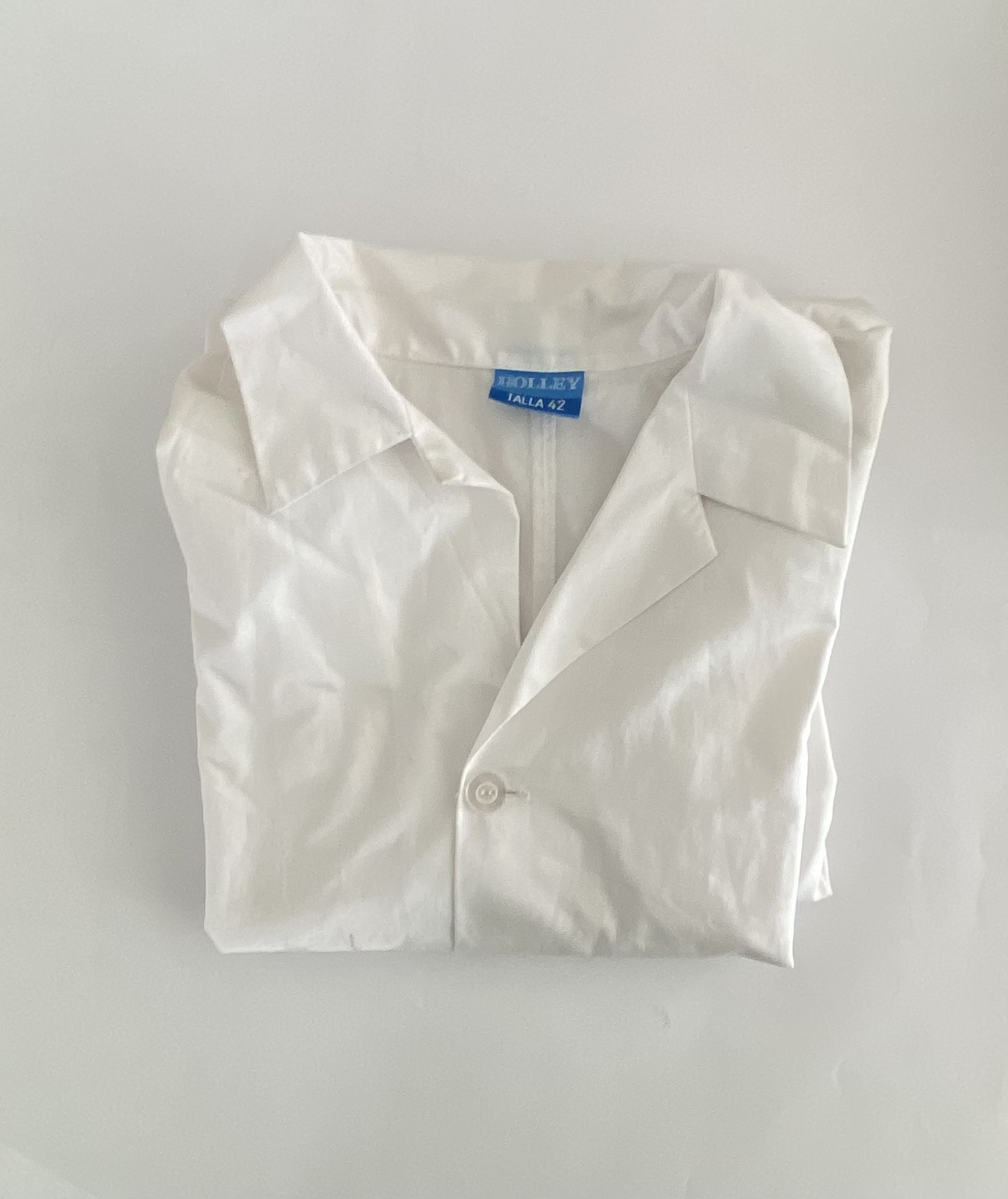 Delantal Bco, foto referencial, variadas marcas, desgaste por uso, puede tener nombre bordado o manchas de pintura. Se elige el que esta en mejor estado al momento de la compra, de todos los que hay.