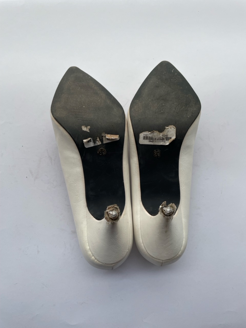 Zapato blanco talla 39. Desgaste por uso.